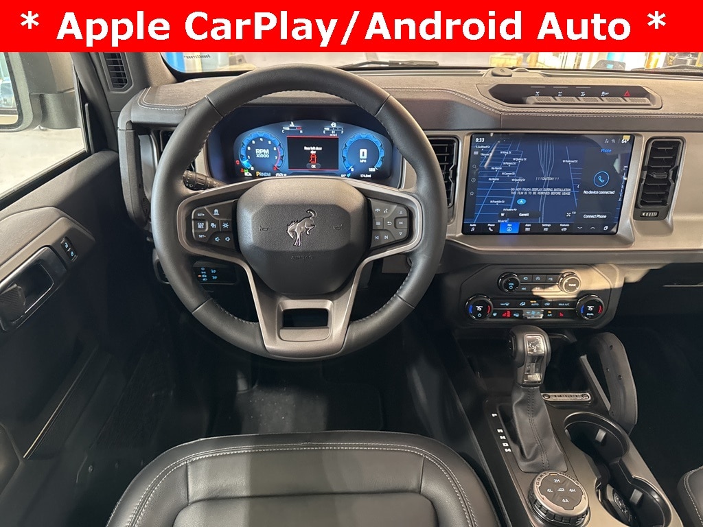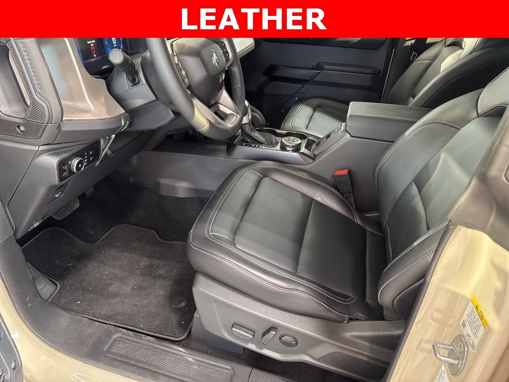 Desert Sand 2025 Ford Bronco Outer Banks 4WD 10-Speed Automatic 2.7L EcoBoost V6 * Apple CarPlay/Android Auto *, * USB ADAPTER *, * BLUETOOTH *, * NAVIGATION GPS NAV *, * LEATHER *, * HEATED SEATS *, * REMOTE ENGINE START *, * 4WD *, *Call 260-357-5121*, Bronco Outer Banks Advanced, 4WD, Desert Sand, Black Onyx Leather, 18" Bright Machined Aluminum Wheels, 360-Degree Camera, 4-Wheel Disc Brakes, 4.7 Final Drive Ratio, Adaptive Cruise Control, Air Conditioning, AM/FM Stereo, Automatic temperature control, Black Appearance Package, Black Molded-In-Color Door Handles, Black Molded-In-Color Fender Flares, Black Molded-In-Color Sideview Mirror Caps, Black-Painted Molded-In-Color Grille, Brake assist, Connected Navigation, Delay-off headlights, Dual front side impact airbags, Equipment Group 314A Lux Package, Evasive Steering Assist, Front anti-roll bar, Front Bucket Seats, Front Center Armrest, Front dual zone A/C, Front Parking Sensors, Hard Top Sound Deadening Headliner, Heated Leather-Trimmed/Vinyl Bucket Seats, Heated steering wheel, High Clearance Fender Flares, High Clearance Suspension, Information on Demand Panel, Navigation system: Connected Navigation, Occupant sensing airbag, Outside temperature display, Panic alarm, Position-Sensitive Bilstein Shock Absorbers, Power driver seat, Power passenger seat, Power windows, Radio data system, Radio: B&O Sound System by Bang & Olufsen, Sasquatch Package, Security system, Sideview Mirrors, SiriusXM w/360L, SYNC 4, Tachometer, Tilt steering wheel, Universal Garage Door Opener.