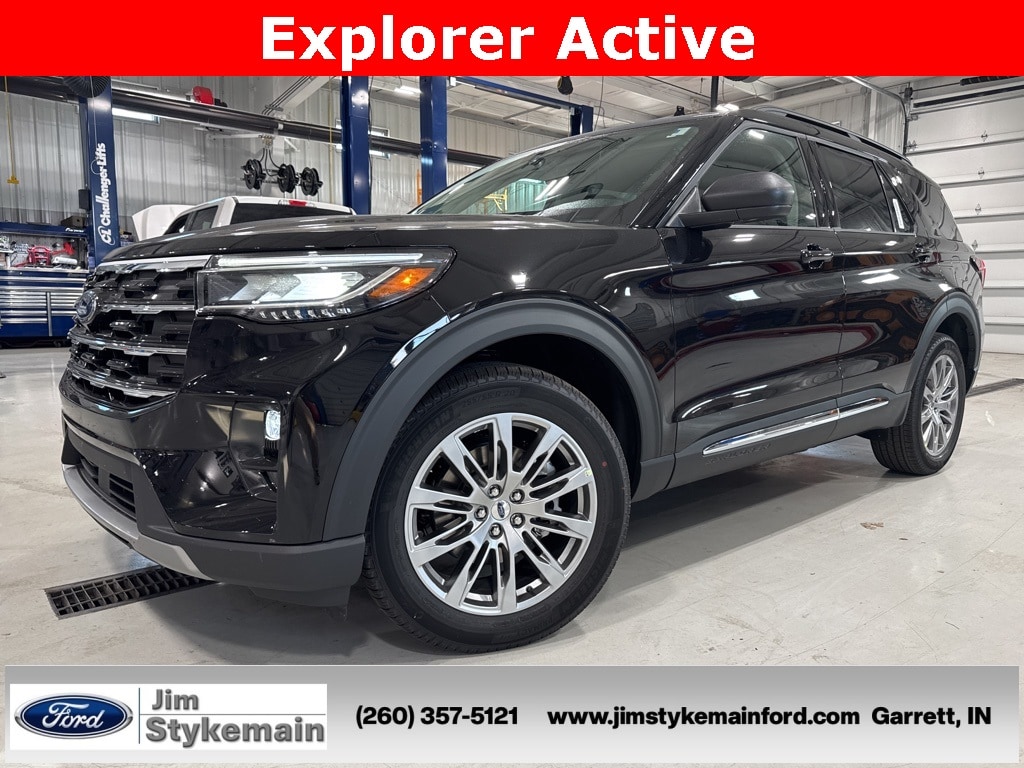 Agate Black Metallic 2025 Ford Explorer Active 4WD 10-Speed Automatic 2.3L EcoBoost I-4 * Apple CarPlay/Android Auto *, * USB ADAPTER *, * BLUETOOTH *, * NAVIGATION GPS NAV *, * LEATHER *, * HEATED SEATS *, * POWER REAR LIFTGATE *, * AWD *, *Call 260-357-5121*, Wheels: 20" Luster Nickel-Painted Aluminum, Explorer Active, 4WD, Agate Black Metallic, Light Space Gray/Onyx w/Heated ActiveX Seating Material Captain's Chairs, 4-Wheel Disc Brakes, 6 Speakers, ABS brakes, Active Comfort Package, Air Conditioning, AM/FM Stereo, Apple CarPlay/Android Auto, Automatic temperature control, Brake assist, Delay-off headlights, Driver vanity mirror, Dual front impact airbags, Electronic Stability Control, Emergency communication system: 911 Assist, Exterior Parking Camera Rear, Four wheel independent suspension, Front Bucket Seats, Front dual zone A/C, Front Fascia, Fully automatic headlights, Heated ActiveX Seating Material Captain's Chairs, Heated front seats, Heated Steering Wheel, Illuminated entry, Leather steering wheel, Low tire pressure warning, Navigation System, Overhead console, Panic alarm, Passenger vanity mirror, Power driver seat, Power Liftgate, Power passenger seat, Power steering, Power windows, Rear air conditioning, Rear anti-roll bar, Rear window wiper, Remote keyless entry, Remote Start System, Second Row HVAC Controls, Security system, Speed control, Speed-sensing steering, Speed-Sensitive Wipers, Split folding rear seat, Steering wheel mounted audio controls, Tachometer, Telescoping steering wheel, Traction control, Universal Garage Door Opener (UGDO), Variably intermittent wipers, Wheels: 20" Luster Nickel-Painted Aluminum.