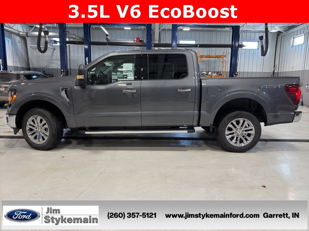 Gray Metallic 2025 Ford F-150 XLT 4WD 10-Speed Automatic 3.5L V6 EcoBoost * Apple CarPlay/Android Auto *, * USB ADAPTER *, * BLUETOOTH *, * HEATED SEATS *, * KEYLESS START *, * 4WD *, *Call 260-357-5121*, F-150 XLT, 3.5L V6 EcoBoost, 4WD, Gray Metallic, 360 Degree Camera, 4 Pickup Box Tie-Down Plates, 400W Cab & Bed Outlets, 6 Speakers, 6" Angular Bright Anodized Step Bar, Adaptive Cruise Control w/Stop & Go, Auto High-beam Headlights, Auto-Dimming Rear-View Mirror, Bed Utility Package, Black Painted Grille w/Chrome Center Bar, Chrome Door & Tailgate Handles, Chrome Single-Tip Exhaust, Cloth 40/Console/40 Front Seats, Connected Navigation, Driver State Detection, Dual front impact airbags, Dual-Zone Electronic Automatic Temperature Control, Equipment Group 302A Mid, Evasive Steering Assist, Ford Co-Pilot360 Assist 2.0, Front anti-roll bar, Front fog lights, Front Parking Sensors, Heated Front Seats, Integrated Trailer Brake Controller, Intelligent Access w/Push Button Start, Internet access capable: FordPass Connect 5G, LED Box Lighting, Low tire pressure warning, Outside temperature display, Overhead console, Power Glass Heated Sideview Mirrors, Power steering, Power windows, Power-Sliding Rear Window, Radio data system, Remote keyless entry, Remote Start System w/Remote Tailgate Release, Steering wheel mounted audio controls, SYNC 4 w/Enhanced Voice Recognition, Tailgate Step w/Tailgate Work Surface, Tow/Haul Package, Towing Technology, Unique Sport Cloth 40/Console/40 Front-Seats, Wheels: 20" Chrome-Like PVD, Wrapped Steering Wheel.