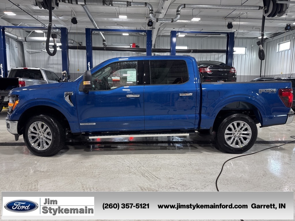 Atlas Blue Metallic 2025 Ford F-150 XLT 4WD 10-Speed Automatic 3.5L PowerBoost Full-Hybrid V6 * Apple CarPlay/Android Auto *, * USB ADAPTER *, * BLUETOOTH *, * NAVIGATION GPS NAV *, * HEATED SEATS *, * KEYLESS START *, * REMOTE ENGINE START *, * 4WD *, *Call 260-357-5121*, F-150 XLT, 4D SuperCrew, 4WD, Atlas Blue Metallic, 360 Degree Camera, 4-Wheel Disc Brakes, 400W Cab & Bed Outlets, 4x4 FX4 Off-Road Bodyside Decal, 6 Speakers, 6" Angular Bright Anodized Step Bar, ABS brakes, Adaptive Cruise Control w/Stop & Go, Air Conditioning, Auto-Dimming Rear-View Mirror, Black Painted Grille w/Chrome Center Bar, Brake assist, Chrome Door & Tailgate Handles, Chrome Single-Tip Exhaust, Cloth 40/Console/40 Front Seats, Connected Navigation, Console Worksurface, Delay-off headlights, Driver State Detection, Dual-Zone Electronic Automatic Temperature Control, Electronic Stability Control, Emergency communication system: SYNC 4 911 Assist, Equipment Group 303A High, Evasive Steering Assist, Ford Co-Pilot360 Assist 2.0, Front anti-roll bar, Front Parking Sensors, Front wheel independent suspension, Fully automatic headlights, FX4 Off-Road Package, Heated Front Seats, Hill Descent Control, Integrated Trailer Brake Controller, Intelligent Access w/Push Button Start, Low tire pressure warning, Manual-Folding Heated Pwr Glass Trailer Tow Mirror, Mobile Office Package, Monotube Rear Shocks, Occupant sensing airbag, Off-Road Tuned Front Shock Absorbers, Panic alarm, Partitioned Lockable Rear Storage, Power Glass Heated Sideview Mirrors, Power-Adjustable Pedals, Power-Sliding Rear Window, Radio data system, Radio: B&O Sound System by Bang & Olufsen, Rear window defroster, Remote Start System w/Remote Tailgate Release, Rock Crawl Mode, Security system, SYNC 4 w/Enhanced Voice Recognition, Telescoping steering wheel, Tilt steering wheel, Tow/Haul Package, Towing Technology, Tray Style Floor Liner w/o Carpet Mats, Wheels: 20" Chrome-Like PVD, Wrapped Steering Wheel.