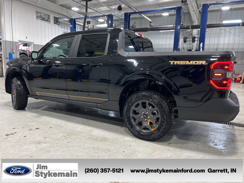Shadow Black 2025 Ford Maverick Tremor AWD 8-Speed Automatic EcoBoost 2.0L I4 GTDi DOHC Turbocharged VCT * Apple CarPlay/Android Auto *, * USB ADAPTER *, * BLUETOOTH *, * NAVIGATION GPS NAV *, * LEATHER *, * HEATED SEATS *, * KEYLESS START *, * AWD *, *Call 260-357-5121*, Maverick Tremor, EcoBoost 2.0L I4 GTDi DOHC Turbocharged VCT, AWD, Shadow Black, ABS brakes, ActiveX Trimmed Heated Front Bucket Seats, Air Conditioning, Apple CarPlay/Android Auto, Automatic temperature control, Brake assist, Delay-off headlights, Driver vanity mirror, Dual front side impact airbags, Electronic Stability Control, Equipment Group 602A, Exterior Parking Camera Rear, Four wheel independent suspension, Front anti-roll bar, Front Bucket Seats, Front Center Armrest, Front dual zone A/C, Heated front seats, Heated steering wheel, Navigation system: Connected Navigation, Outside temperature display, Panic alarm, Passenger vanity mirror, Power driver seat, Power steering, Radio data system, Rear step bumper, Remote keyless entry, Security system, SiriusXM w/360L, Speed control, Speed-sensing steering, Steering wheel mounted audio controls, SYNC 4 w/Enhanced Voice Recognition, Telescoping steering wheel, Tilt steering wheel, Trip computer.