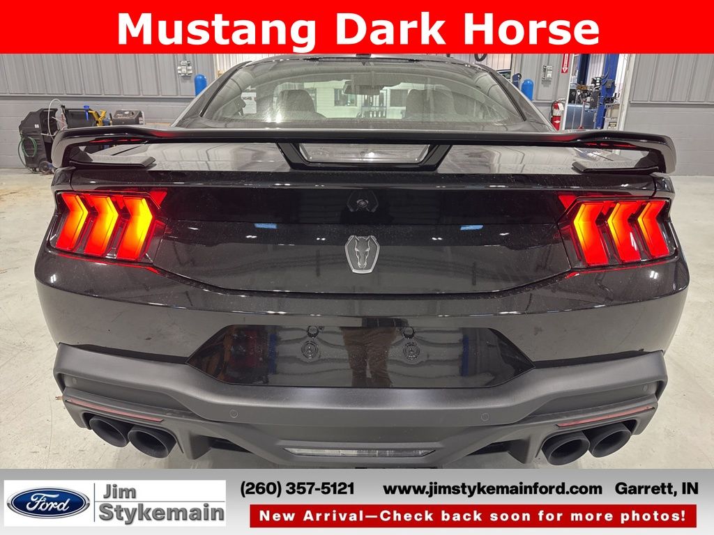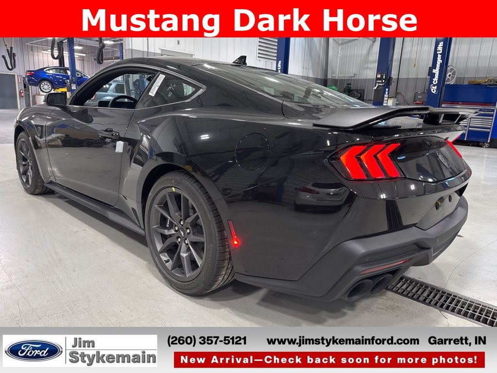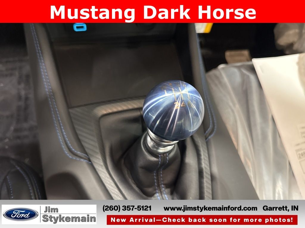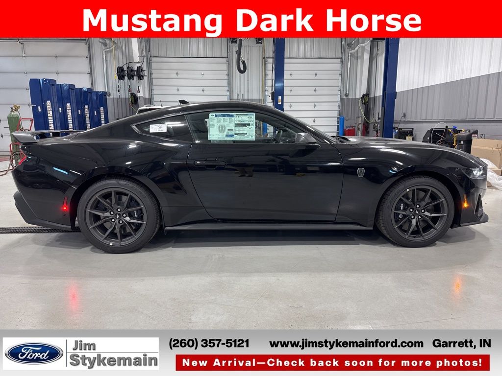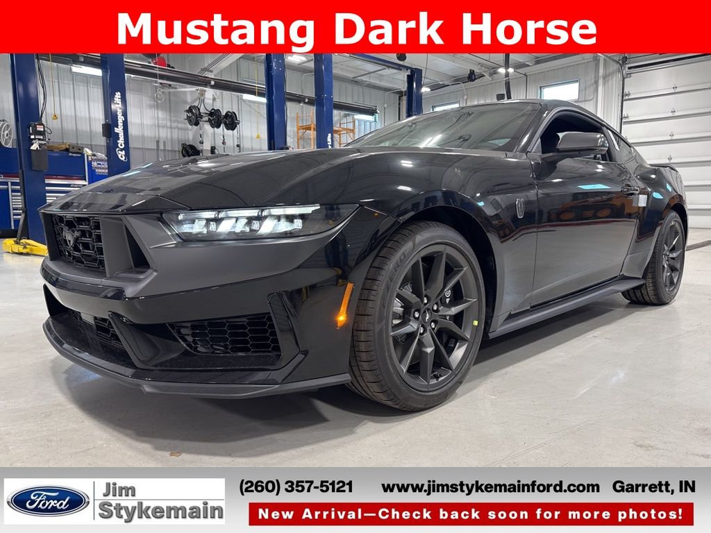 Shadow Black 2025 Ford Mustang Dark Horse RWD Tremec 6-Speed Manual 4V 5.0 V8 * Apple CarPlay/Android Auto *, * USB ADAPTER *, * BLUETOOTH *, *Call 260-357-5121*, Mustang Dark Horse, 4V 5.0 V8, Tremec 6-Speed Manual, Shadow Black, ABS brakes, Active Anti-Theft System, Adaptive suspension, Air Conditioning, Aluminum Foot Pedals, AM/FM radio: SiriusXM with 360L, Approach Detection, Auto High-beam Headlights, Automatic temperature control, B&O Sound System by Bang & Olufsen, Brake assist, Cloth/Vinyl Climate-Controlled Bucket Seats, Compass, Delay-off headlights, Driver door bin, Driver Seat & Mirrors Memory, Dual front side impact airbags, Electronic Stability Control, Equipment Group 700A Deluxe Package, Exterior Parking Camera Rear, Four wheel independent suspension, Front anti-roll bar, Front Center Armrest, Front dual zone A/C, Fully automatic headlights, Heated front seats, Heated steering wheel, Knee airbag, Locking Center Console, Navigation system: Connected Navigation, Outside temperature display, Panic alarm, Power driver seat, Power steering, Power windows, Radio data system, Rain sensing wipers, Rear anti-roll bar, Security Package, SiriusXM w/360L, Speed control, Speed-sensing steering, Speed-Sensitive Wipers, Sport steering wheel, Steering wheel mounted audio controls, Tachometer, Tilt steering wheel, Trip computer, Universal Garage Door Opener (UGDO), Wheel Locking Kit.