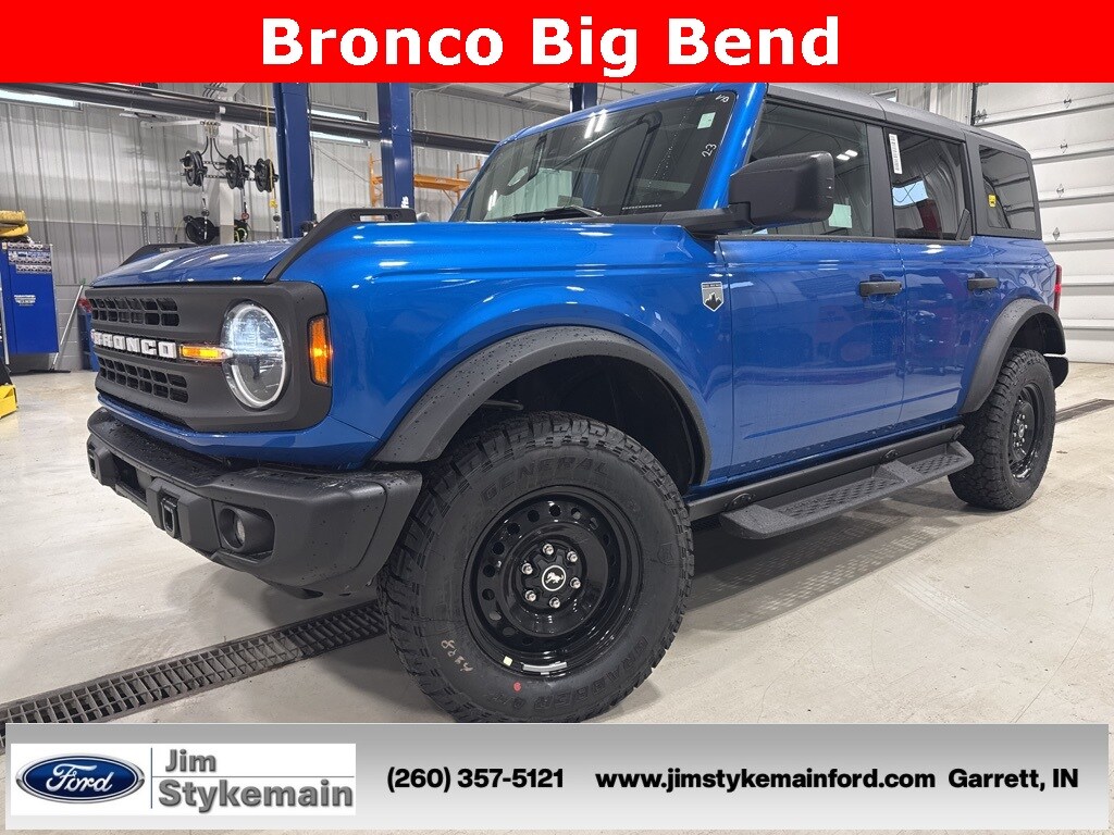 Velocity Blue Metallic 2026 Ford Bronco Big Bend Black Diamond Package 4WD 10-Speed Automatic 2.3L EcoBoost I-4 * Apple CarPlay/Android Auto *, * USB ADAPTER *, * BLUETOOTH *, * NAVIGATION GPS NAV *, * HEATED SEATS *, * KEYLESS START *, * 4WD *, *Call 260-357-5121*, Bronco Big Bend Black Diamond Package, 4D Sport Utility, 4WD, Velocity Blue Metallic, Black Onyx w/Unique Vinyl Bucket Seats, 2-Door Intelligent Access with Lock/Unlock, 4.46 Final Drive Ratio with Rear Locking Differential, AM/FM Stereo, Ambient Footwell Lighting, Auxiliary Switches, Black Diamond Package, Cloth Bucket Seats, Connected Navigation, Driver and Front Passenger Illuminated Sliding Visor Vanity Mirrors, Dual Smart Charging USB Ports, Dual-Zone Electronic Automatic Temperature Control, Equipment Group 222A Mid Package, Ford Connectivity Package (1-Year Included), Front Row Heated Seats, LED Fog Lamps, Powder Coated Steel Front and Rear Bumpers, Pro Power Onboard - 400W, Rear Parking Sensors, Rock Rails, SiriusXM with 360L, SYNC 4, Washout Capable Rubberized Flooring, Wheels: 17" Black High Gloss-Painted Steel, Wheels: 17" Carbonized Gray-Painted Aluminum.