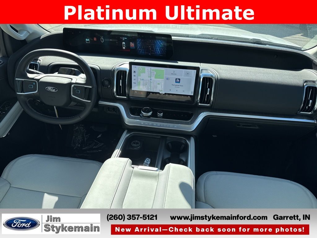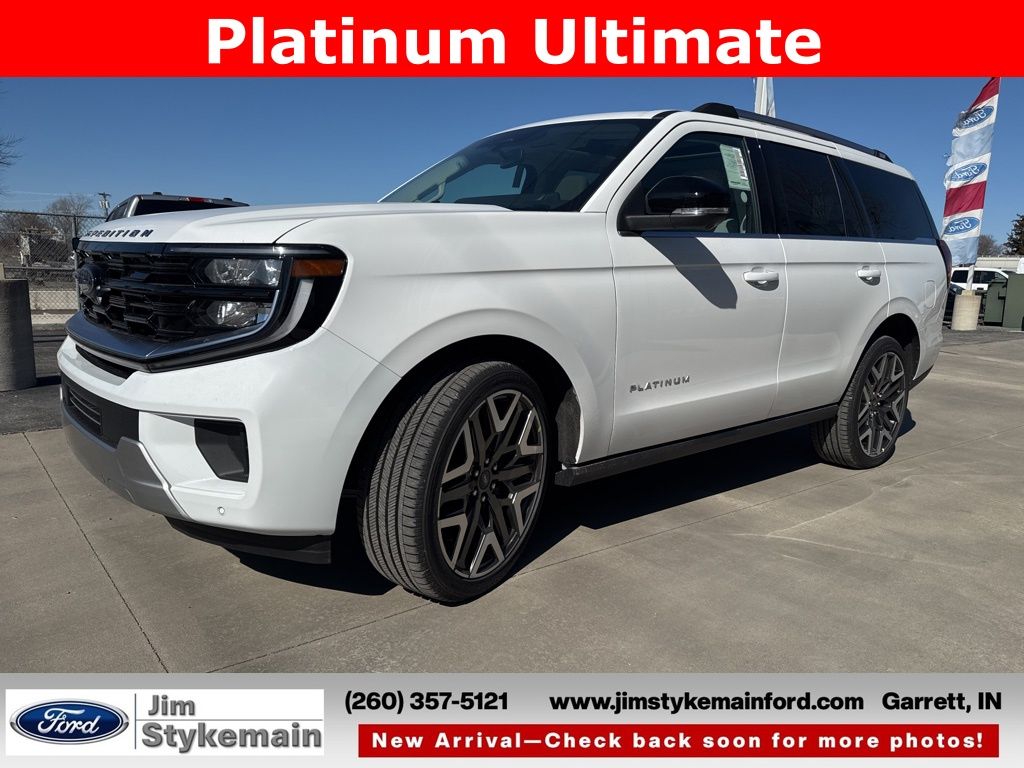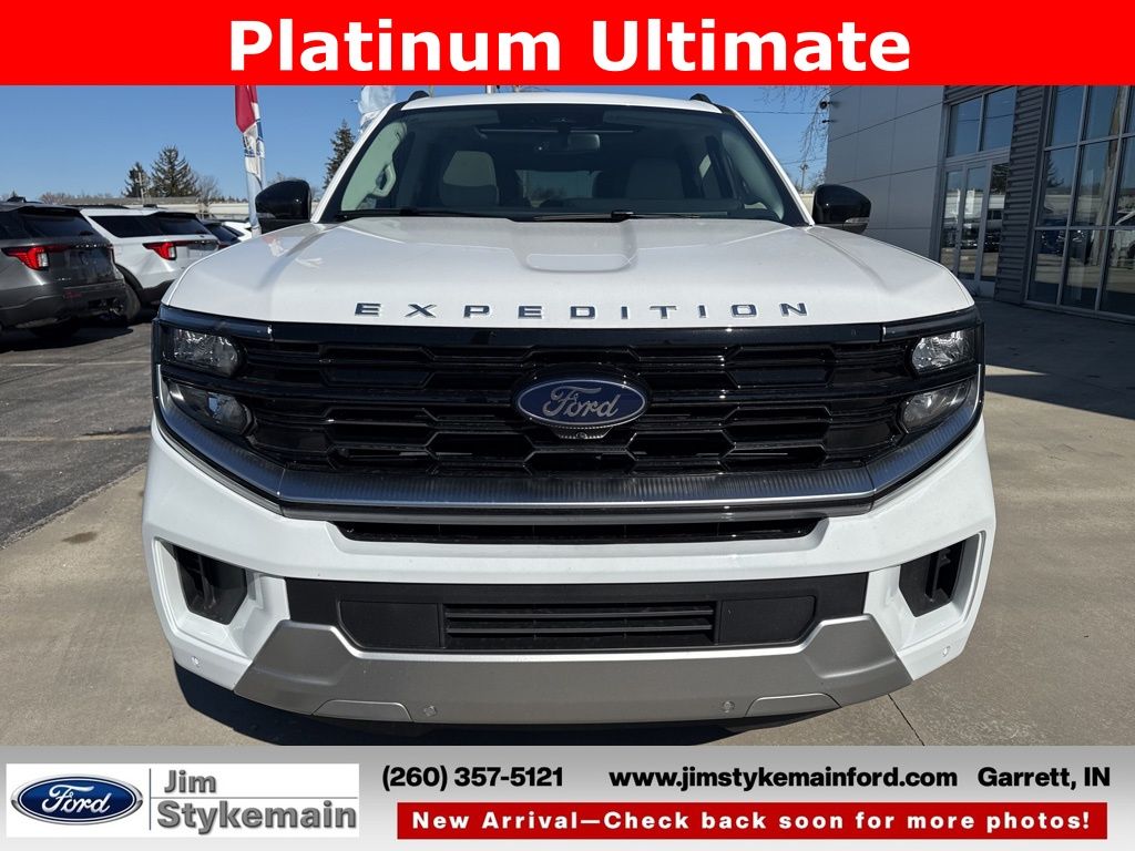 Oxford White 2026 Ford Expedition Platinum Ultimate Package 4WD 10-Speed Automatic 3.5L V6 EcoBoost High Output * Apple CarPlay/Android Auto *, * USB ADAPTER *, * BLUETOOTH *, * NAVIGATION GPS NAV *, * LEATHER *, * HEATED AND COOLED SEATS *, * KEYLESS START *, * SUNROOF *, * 3RD ROW SEATS *, * REMOTE ENGINE START *, * POWER REAR LIFTGATE *, * 4WD *, *Call 260-357-5121*, Expedition Platinum Ultimate Package, 4D Sport Utility, 3.5L V6 EcoBoost High Output, 4WD, Oxford White, Salt Crystal Gray w/Heated and Ventilated Leather Front Captain's Chairs, Apple CarPlay/Android Auto, Auto-dimming Rear-View mirror, Black Headlamp Bezel with Satin Trim Applique, Black Onyx Painted Power Deployable Running Boards, BlueCruise (equipment + 1-Year + 90-Day Plan), Brake assist, Carbon Black Front Bumper with Lit Grille Bar, Chrome Roof Rails with Black End Caps, Delay-off headlights, Driver's Package, Electronic Stability Control, Emergency communication system: 911 Assist, Engine Sound Enhancer, Exterior Parking Camera Rear, Ford Connectivity Package (1-Year Included), Front anti-roll bar, Front Center Armrest, Front Door Scuff Plates with Met Insert and Bright Rear, Front dual zone A/C, Front reading lights, Garage door transmitter, Genuine wood door panel insert, Heated front seats, Heated steering wheel, High Flow Exhaust System, Memory seat, Multicontour Active Motion Lthr Frnt Captains Chairs, Navigation System, Passenger vanity mirror, Platinum Ultimate Interior Package, Platinum Ultimate Package, Polished Stainless Steel Beltline Molding, Power moonroof: Vista Roof, Power passenger seat, Power windows, Radio: B&O Play Unleashed, Rear air conditioning, Rear Seat Radio Controls, Rear Side Windows Laminated Glass, Rear window defroster, Rear window wiper, Reclining 3rd row seat, Satin Aluminum Expedition Lettering on Side and Hood, Satin Aluminum Platinum Badge on Tailgate, Signature Grille Lighting, SiriusXM with 360L, Speed-Sensitive Wipers, Steering wheel memory, Steering wheel mounted audio controls, Ventilated front seats, Wheels: 24" x 9.5" Tarnished Dark Metallic.