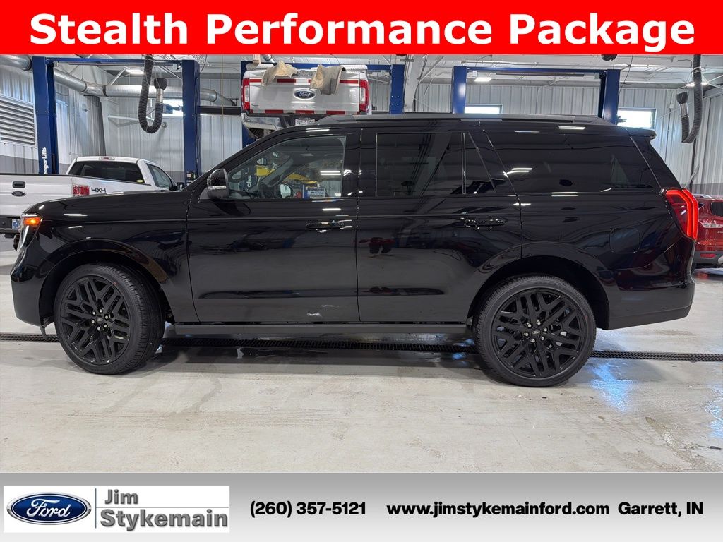 Agate Black Metallic 2026 Ford Expedition Platinum Stealth Performance Package 4WD 10-Speed Automatic 3.5L V6 EcoBoost High Output * Apple CarPlay/Android Auto *, * USB ADAPTER *, * BLUETOOTH *, * NAVIGATION GPS NAV *, * LEATHER *, * HEATED SEATS *, * HEATED AND COOLED SEATS *, * KEYLESS START *, * SUNROOF *, * 3RD ROW SEATS *, * REMOTE ENGINE START *, * POWER REAR LIFTGATE *, * 4WD *, *Call 260-357-5121*, Expedition Platinum Stealth Performance Package, 4D Sport Utility, 3.5L V6 EcoBoost High Output, 4WD, Agate Black Metallic, Black Onyx w/Heated and Ventilated Leather Front Captain's Chairs, 3rd row seats: split-bench, Air Conditioning, AM/FM radio: SiriusXM with 360L, Apple CarPlay/Android Auto, Black Belt Molding, Black Expedition Lettering on Hood, Black Headlamp Bezel with Ebony Trim Applique, Black Onyx Painted Power Deployable Running Boards, Black Platinum Badge on Tailgate, Black Roof Rails, Brake assist, Carbon Black Front Bumper/Fascia, Driver door bin, Driver vanity mirror, Driver's Package, Dual front side impact airbags, Electronic Stability Control, Engine Sound Enhancer, Ford Connectivity Package (1-Year Included), Front anti-roll bar, Front Center Armrest, Front dual zone A/C, Fully automatic headlights, Genuine wood dashboard insert, Heated rear seats, Heated steering wheel, High Flow Exhaust System, Memory seat, Navigation System, Power driver seat, Power moonroof: Vista Roof, Power steering, Power windows, Radio data system, Radio: B&O Play Unleashed, Rear Side Windows Laminated Glass, Reclining 3rd row seat, Signature Grille Lighting, SiriusXM with 360L, Stealth Appearance Package, Stealth Performance Package, Steering wheel memory, Steering wheel mounted audio controls, Telescoping steering wheel, Traction control, Turn signal indicator mirrors, Ventilated front seats, Wheels: 24" x 9.5" Ebony Painted Aluminum.
