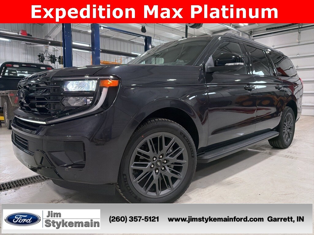 Dark Matter Gray Metallic 2026 Ford Expedition Max Platinum 4WD 10-Speed Automatic EcoBoost 3.5L V6 GTDi DOHC 24V Twin Turbocharged * Apple CarPlay/Android Auto *, * USB ADAPTER *, * BLUETOOTH *, * NAVIGATION GPS NAV *, * LEATHER *, * HEATED SEATS *, * HEATED AND COOLED SEATS *, * SUNROOF *, * 3RD ROW SEATS *, * REMOTE ENGINE START *, * POWER REAR LIFTGATE *, * 4WD *, *Call 260-357-5121*, Expedition Max Platinum, 4D Sport Utility, EcoBoost 3.5L V6 GTDi DOHC 24V Twin Turbocharged, 4WD, Dark Matter Gray Metallic, Black Onyx w/Heated and Ventilated Leather Front Captain's Chairs, 10 Speakers, 3rd row seats: split-bench, ABS brakes, Air Conditioning, AM/FM radio: SiriusXM with 360L, Apple CarPlay/Android Auto, Auto High-beam Headlights, Automatic temperature control, Black Belt Molding, Black Expedition Lettering on Hood, Black Headlamp Bezel with Ebony Trim Applique, Black Platinum Badge on Tailgate, Black Roof Rails, Brake assist, Carbon Black Front Bumper/Fascia, Delay-off headlights, Dual front side impact airbags, Electronic Stability Control, Exterior Parking Camera Rear, Ford Connectivity Package (1-Year Included), Ford Digital Experience, Front anti-roll bar, Front Center Armrest, Front dual zone A/C, Front reading lights, Genuine wood dashboard insert, Heated and Ventilated Leather Front Captain's Chairs, Heated rear seats, Heated steering wheel, Illuminated entry, Memory seat, Navigation System, Occupant sensing airbag, Outside temperature display, Overhead console, Power door mirrors, Power driver seat, Power moonroof: Vista Roof, Power steering, Radio data system, Radio: B&O Sound System by Bang and Olufsen, Rear reading lights, Rear Side Windows Laminated Glass, Rear window defroster, Rear window wiper, Reclining 3rd row seat, Remote keyless entry, Signature Grille Lighting, SiriusXM with 360L, Speed-sensing steering, Speed-Sensitive Wipers, Split folding rear seat, Spoiler, Stealth Appearance Package, Steering wheel memory, Steering wheel mounted audio controls, Telescoping steering wheel, Traction control, Turn signal indicator mirrors, Variably intermittent wipers, Ventilated front seats, Voltmeter.