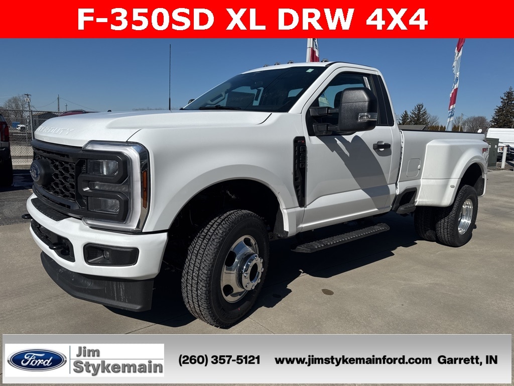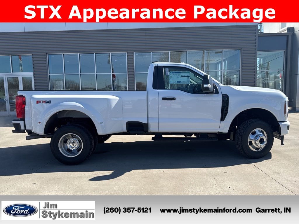 Oxford White 2026 Ford F-350SD XL DRW 4WD 10-Speed Automatic 7.3L V8 PFI SOHC 16V Federal 405hp * Apple CarPlay/Android Auto *, * USB ADAPTER *, * BLUETOOTH *, * 4WD *, *Call 260-357-5121*, F-350 SuperDuty XL DRW, 7.3L V8 PFI SOHC 16V Federal 405hp, 4WD, Oxford White, 17" Forged Polished Aluminum Wheels, 250 Amp Alternator, 4 Speakers, Air Conditioning, Body-Color Front Bumper, Body-Color Rear Bumper, Brake assist, Cloth 40/20/40 Split Bench Seat, Color-Coordinated Full Carpet with Floor Mats, Electronic Stability Control, Emergency communication system: SYNC 4 911 Assist, Ford Connectivity Package (1-Year Included), FX4 Off-Road Package, GVWR: 14,000 Lb Payload Package, Heated door mirrors, Hill Descent Control, Internet access capable: 5G Modem - Ford Connectivity Package, LED Fog Lamps, Limited Slip with 3.73 Axle Ratio, Off-Road Specifically Tuned Shock Absorbers, Overhead console, Painted Grille, Panic alarm, Platform Running Boards, Power steering, Power windows, Radio: AM/FM Stereo with MP3 Player, Remote keyless entry, Security system, Speed control, Steering wheel mounted audio controls, STX Appearance Package, SYNC 4, Tachometer, Telescoping steering wheel, Tilt steering wheel, Trip computer, Unique FX4 Off-Road Box Decal, Upfitter Switches (6).