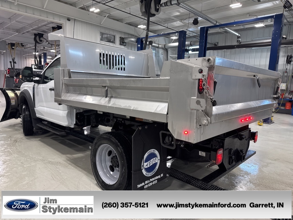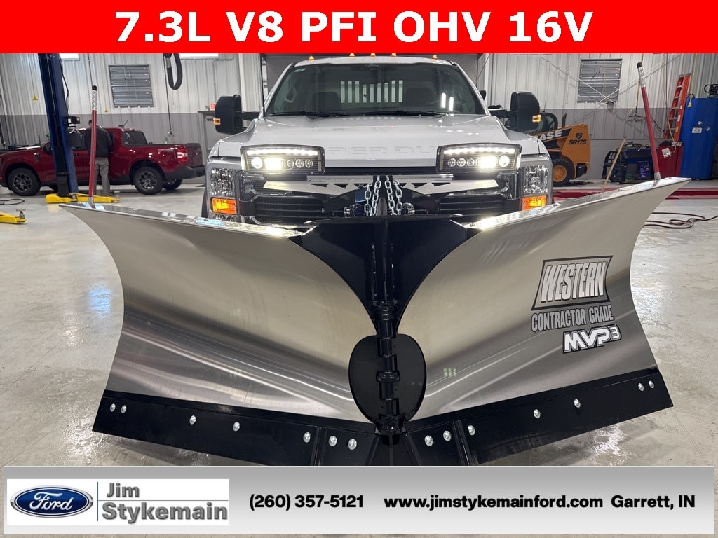 Oxford White 2026 Ford F-450SD Stainless Steel Dump Snow Plow DRW 4WD 10-Speed Automatic 7.3L V8 PFI OHV 16V Federal 335hp * Apple CarPlay/Android Auto *, * USB ADAPTER *, * BLUETOOTH *, * 4WD *, *Call 260-357-5121*, Western V-Plow, 9X96 Stainless Steel DropSide, F-450SD Stainless Steel Dump Snow Plow DRW, 7.3L V8 PFI OHV 16V Federal 335hp, 4WD, Oxford White, 4 Speakers, ABS brakes, Air Conditioning, AM/FM radio, Brake assist, Bright Grille, Chrome Front Bumper, Compass, Emergency communication system: SYNC 4 911 Assist, Ford Connectivity Package (1-Year Included), GVWR: 16,500 Lb Payload Package, Halogen Fog Lamps, Heated door mirrors, Illuminated entry, Low tire pressure warning, Outside temperature display, Power steering, Power windows, Radio: AM/FM Stereo with MP3 Player, Rear View Camera and Prep Kit, Remote keyless entry, Remote Start, Security system, Snow Plow Prep Package, Speed control, Steering wheel mounted audio controls, Telescoping steering wheel, Tilt steering wheel, Traction control, Trailer Brake Controller, Variably intermittent wipers, XL Chrome Package.