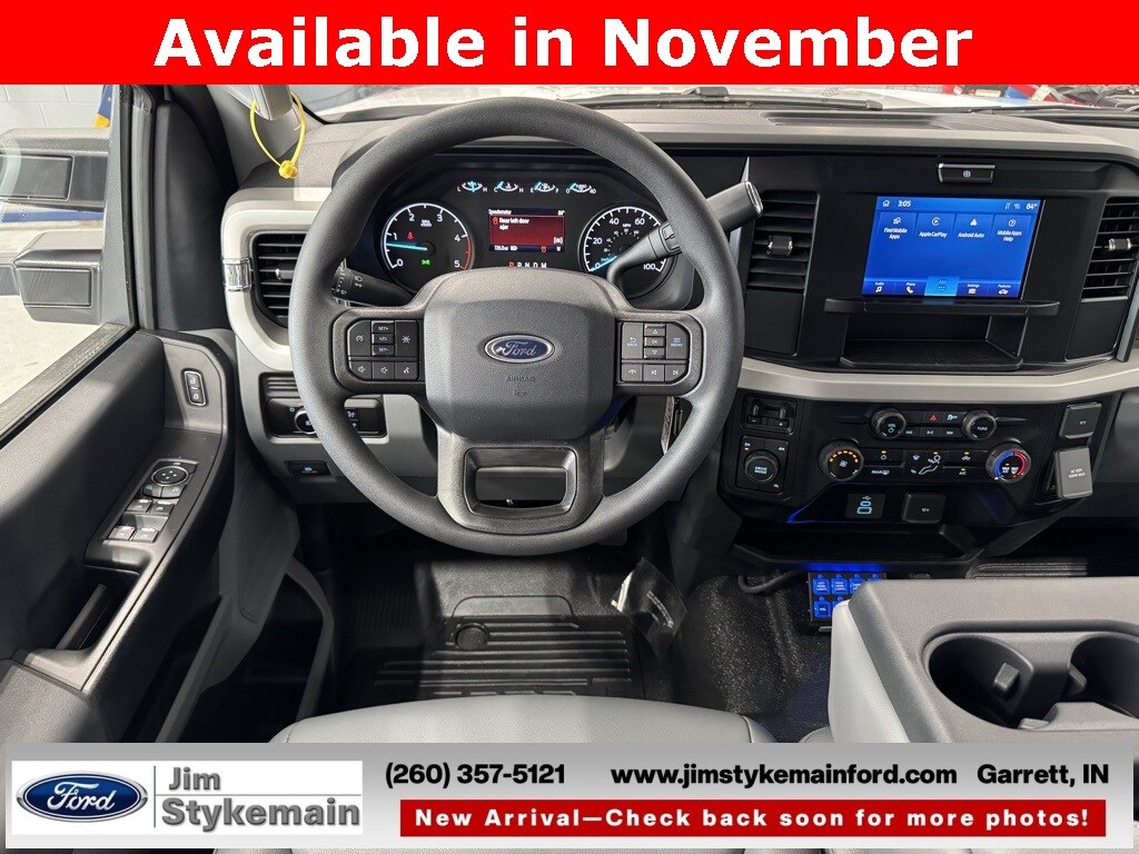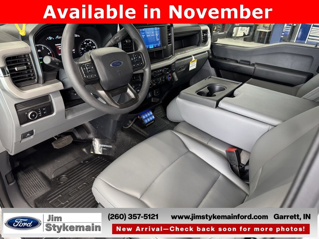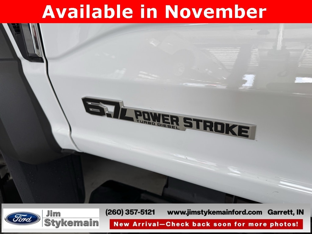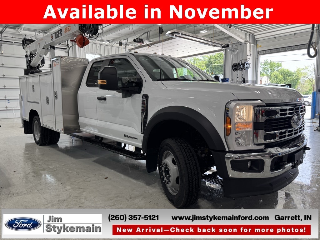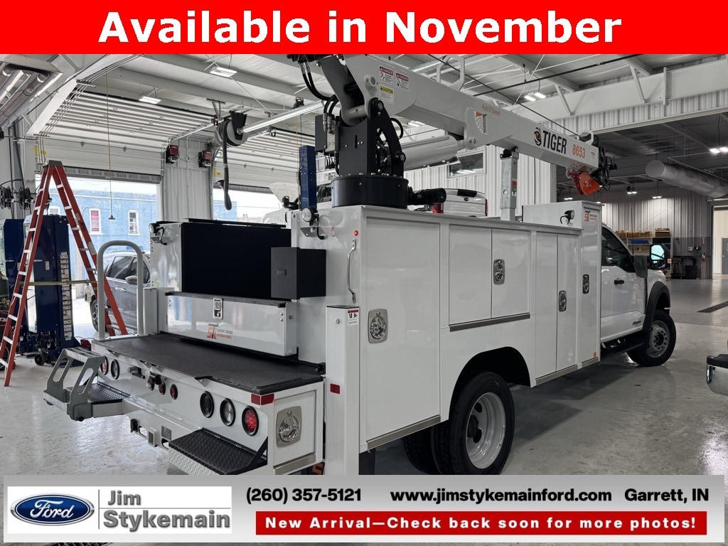 Oxford White 2026 Ford F-550SD XL STI Service Body DRW 4WD 10-Speed Automatic Power Stroke 6.7L V8 DI 32V OHV Turbodiesel * DIESEL *, * 4WD *, *Call 260-357-5121*, Model 8653 TIGER Hydraulic crane. 50k ft lb crane moment rating, 8,600 lbs capacity, 30.5' of hyd reach, 68 FPM no load single line winch speed, Auto II speed, Wireless joystick control with proportional trigger and LCD load display, Integrated filtration with visual bypass alert, 400 degree rotation, Anti-two-block, overload protection, notification horn and 33 ft tether cord. Cranes mounted on chassis will include a stability test report. Painted standard white. 2 year warranty., 2250, 84 CA, Series I Crane Body with Workbench, 22" Deep x 50" tall Cabinets, Raised 60" CS Cabinet for O/A. Pressurized cabinets, reinforced SS Cabinet. Will mount on chassis with 19.5" tires. Includes 2 year Warranty., VMAC H40, Hydraulic Driven Screw Compressor with 25-40 cfm @ 150 PSI. Includes cold weather package. Requires 9 12 GPM. Minimum 5 gallon air reservoir., Inverter DC-AC, 1500W Pure Sine. Connects to chassis batteries., 33 Gal Headgate Reservoir - Includes 10 micron return filter, drain valve and level guage with thermometer. Reservoir is filled with Petro Canada Hydrex AW 46., Grab Handle and folding step for Ingress/Egress to deck area. Attaches to workbench on SS. Painted with body., Interior LED Side Strip light kit for 84 CA. Can be added to or ILO top of cabinet strip option. Qty 1 for Complete body., F-550SD XL STI Service Body DRW, Super Cab, Power Stroke 6.7L V8 DI 32V OHV Turbodiesel, 4WD, Oxford White, ABS brakes, Air Conditioning, AM/FM radio, Bright Grille, Chrome Front Bumper, Compass, Extra Heavy-Service Suspension Package, Ford Connectivity Package (1-Year Included), GVWR: 19,500 lb Payload Plus Upgrade Package 1, Halogen Fog Lamps, Heated door mirrors, Illuminated entry, Internet access capable: 5G Modem - Ford Connectivity Package, Low tire pressure warning, Outside temperature display, Platform Running Boards, Power steering, Power windows, Privacy Glass w/Power Sliding Rear Glass, Rear Window Defroster, Remote keyless entry, Remote Start, Speed control, SYNC 4 Communication & Entertainment System, Tachometer, Traction control, XL Chrome Package.