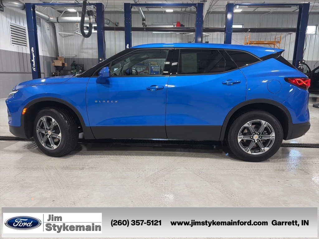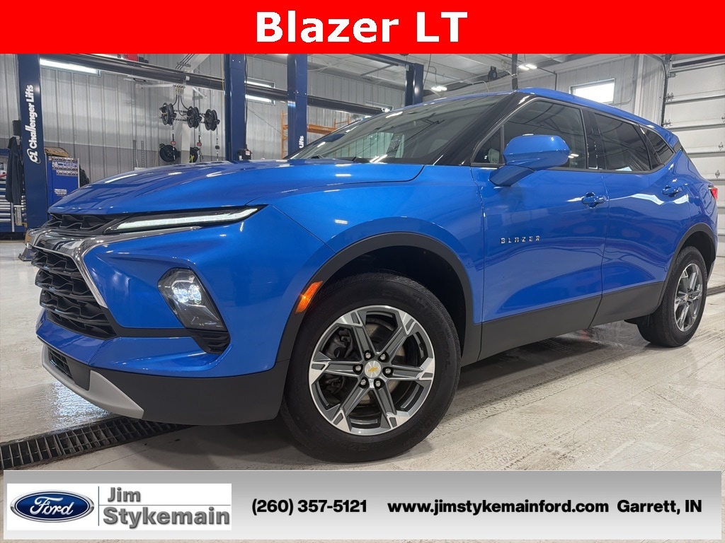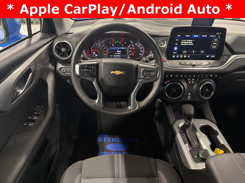 * Apple CarPlay/Android Auto *, * USB ADAPTER *, * BLUETOOTH *, * HEATED SEATS *, * REMOTE ENGINE START *, *Call 260-357-5121*, Blazer LT, 2.0L Turbocharged, FWD, Riptide Blue Metallic, Jet Black/Medium Gray Cloth, 6 Speakers, 6-Speaker Audio System Feature, 8-Way Power Driver Seat Adjuster, ABS brakes, Air Conditioning, Alloy wheels, AM/FM radio: SiriusXM with 360L, Apple CarPlay/Android Auto, Automatic temperature control, Brake assist, Compass, Delay-off headlights, Driver vanity mirror, Dual front side impact airbags, Electronic Stability Control, Four wheel independent suspension, Front anti-roll bar, Front reading lights, Heated front seats, Knee airbag, Leather Shift Knob, Outside temperature display, Panic alarm, Power Driver Lumbar Control, Power driver seat, Power windows, Preferred Equipment Group 2LT, Radio: Chevrolet Infotainment 3 Plus System, Rear seat center armrest, Rear window defroster, Rear window wiper, Remote keyless entry, Ride & Handling Suspension, SiriusXM w/360L, Steering wheel mounted audio controls, Telescoping steering wheel, Tilt steering wheel, Traction control, Trip computer, Variably intermittent wipers, Voltmeter, Wheels: 18" Grazen Metallic Aluminum.