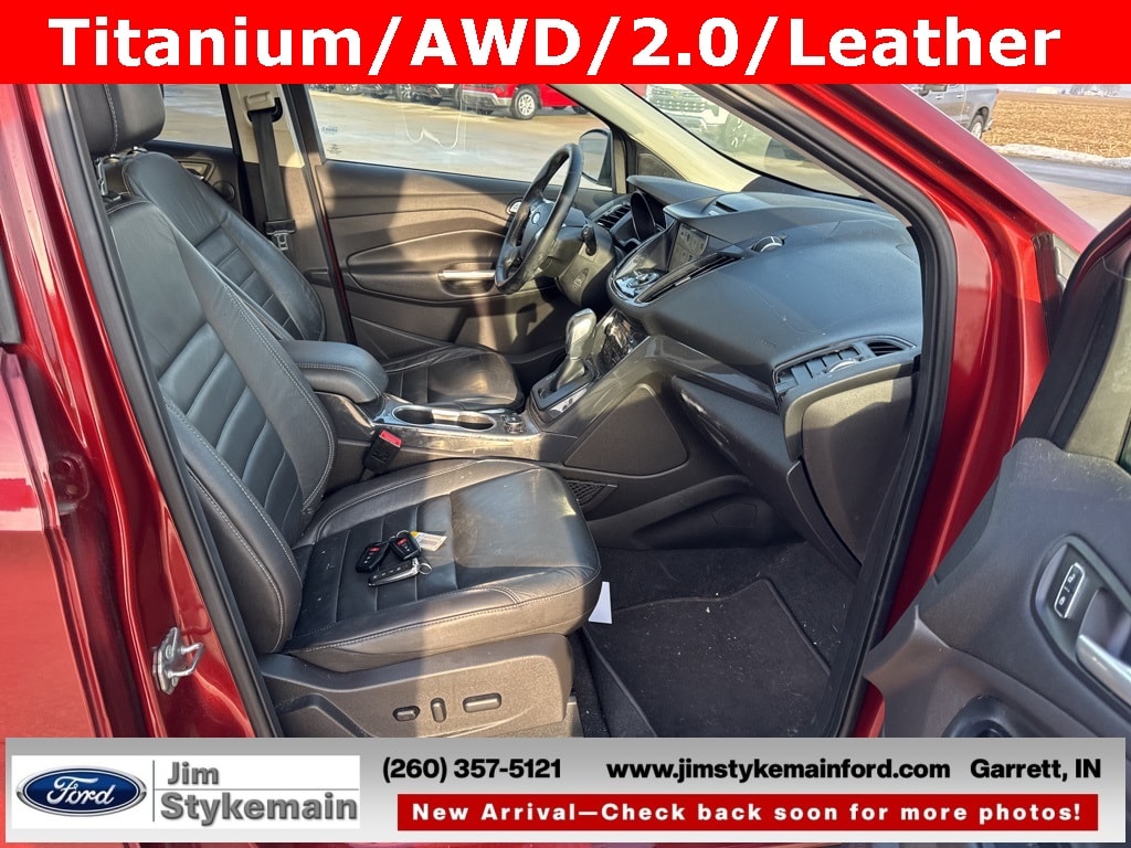 * USB ADAPTER *, * BLUETOOTH *, * NAVIGATION GPS NAV *, * LEATHER *, * HEATED SEATS *, * KEYLESS START *, * REMOTE ENGINE START *, * POWER REAR LIFTGATE *, * 4WD *, *Call 260-357-5121*, *** COMPLEMENTARY 3 MONTH - 3,000 MILE POWERTRAIN WARRANTY ***, Escape Titanium, 4D Sport Utility, 4WD, Sunset, Charcoal Black w/Heated Leather-Trimmed Buckets w/60/40 Rear Seat, 10 Speakers, Active Park Assist, Air Conditioning, Automatic temperature control, Bi-Xenon High-Intensity Discharge Headlamps, BLIS w/Cross Traffic Alert, Brake assist, Bumpers: body-color, CD player, Class II Trailer Tow, Compass, Driver door bin, Dual front side impact airbags, Emergency communication system: 911 Assist, Equipment Group 301A, Exterior Parking Camera Rear, Four wheel independent suspension, Front anti-roll bar, Front Bucket Seats, Front Center Armrest, Fully automatic headlights, Garage door transmitter, Heated front seats, Heated Leather-Trimmed Buckets w/60/40 Rear Seat, Illuminated entry, Knee airbag, Memory seat, Navigation System, Outside temperature display, Overhead airbag, Power door mirrors, Power Liftgate, Power steering, Radio data system, Radio: AM/FM Single CD/MP3, Rain-Sensing Wipers, Rear Parking Sensors, Rear reading lights, Rear seat center armrest, Rear window defroster, Remote keyless entry, Roof rack: rails only, Security system, Speed control, Split folding rear seat, SYNC 3 Communications & Entertainment System, Telescoping steering wheel, Tilt steering wheel, Titanium Technology Package, Traction control, Voice-Activated Touchscreen Navigation System, Wheels: 19" Luster Nickel-Painted Alloy.