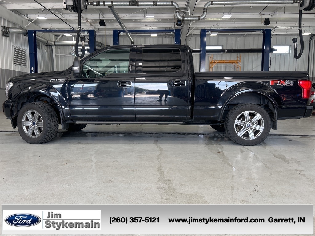 * Apple CarPlay/Android Auto *, * USB ADAPTER *, * BLUETOOTH *, * LEATHER *, * HEATED SEATS *, * SUNROOF *, * 4WD *, *Call 260-357-5121*, *** COMPLEMENTARY 3 MONTH - 3,000 MILE POWERTRAIN WARRANTY ***, F-150 Lariat Sunroof, 4D SuperCrew, 5.0L V8, 4WD, Black w/Leather-Trimmed Bucket Seats, 110V/400W Outlet, 2nd Row Heated Seats, 4-Wheel Disc Brakes, 4x4 FX4 Off-Road Bodyside Decal, 7 Speakers, ABS brakes, Adjustable pedals, Air Conditioning, Alloy wheels, AM/FM radio: SiriusXM, AppLink/Apple CarPlay and Android Auto, Auto High-beam Headlights, Auto-dimming Rear-View mirror, Automatic temperature control, BLIS Blind Spot Information System, Brake assist, Chrome 2-Bar Grille w/4 Minor Bars, Chrome Angular Step Bars, Chrome Door & Tailgate Handles w/Body-Color Bezel, Chrome Skull Caps on Exterior Mirrors, Class IV Trailer Hitch Receiver, Delay-off headlights, Driver vanity mirror, Dual front side impact airbags, Electronic Stability Control, Emergency communication system: SYNC 3 911 Assist, Equipment Group 502A Luxury, Front anti-roll bar, Front dual zone A/C, FX4 Off-Road Package, Heated Steering Wheel, Hill Descent Control, Illuminated entry, Lariat Chrome Appearance Package, Leather-Trimmed 40/20/40 Front Seat, Leather-Trimmed Bucket Seats, LED Sideview Mirror Spotlights, Low tire pressure warning, Memory seat, Off-Road Tuned Front Shock Absorbers, Outside temperature display, Panic alarm, Passenger vanity mirror, Pedal memory, Power Glass Sideview Mirr w/Chrome Skull Caps, Power steering, Power Tilt/Telescoping Steering Column w/Memory, Quad Beam LED Headlamps & LED Taillamps/Fog Lamps, Radio data system, Radio: AM/FM Stereo w/6 Speakers, Radio: B&O Sound System by Bang & Olufsen, Rain-Sensing Wipers, Rear reading lights, Rear window defroster, Remote keyless entry, Remote Start System w/Remote Tailgate Release, Reverse Sensing System, Single-Tip Chrome Exhaust, SiriusXM Radio, Speed control, Split folding rear seat, SYNC 3, Tachometer, Traction control, Tray Style Floor Liner, Twin Panel Moonroof, Universal Garage Door Opener, Wheels: 18" Chrome-Like PVD, Windshield Wiper De-Icer.