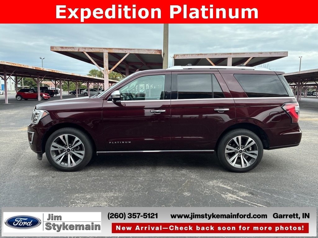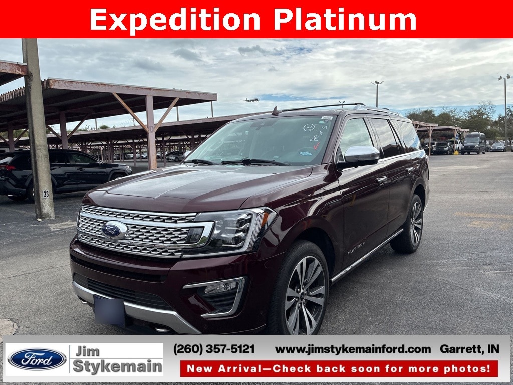 * Apple CarPlay/Android Auto *, * USB ADAPTER *, * BLUETOOTH *, * NAVIGATION GPS NAV *, * HEATED SEATS *, * KEYLESS START *, * SUNROOF *, * REAR ENTERTAINMENT *, * 3RD ROW SEATS *, * REMOTE ENGINE START *, * POWER REAR LIFTGATE *, * 4WD *, *Call 260-357-5121*, *** COMPLEMENTARY 3 MONTH - 3,000 MILE POWERTRAIN WARRANTY ***, Expedition Platinum, 4D Sport Utility, EcoBoost 3.5L V6 GTDi DOHC 24V Twin Turbocharged, 4WD, Burgundy, Ebony Leather, 12 Speakers, 2nd Row Captain's Chairs w/Armrests, 3rd row seats: split-bench, Air Conditioning, AM/FM radio: SiriusXM, Auto-dimming door mirrors, Auto-dimming Rear-View mirror, Automatic temperature control, Brake assist, Delay-off headlights, Driver door bin, Dual front impact airbags, Dual-Headrest Rear-Seat Entertainment System, Electronic Limited Slip w/3.73 Axle Ratio, Electronic Stability Control, Equipment Group 600A, Exterior Parking Camera Rear, Four wheel independent suspension, Front anti-roll bar, Front Bucket Seats, Fully automatic headlights, Garage door transmitter, Genuine wood dashboard insert, Genuine wood door panel insert, Heated door mirrors, Heated front seats, Heavy-Duty Engine Radiator, Heavy-Duty Trailer Tow Package, Integrated Trailer Brake Controller, Leather steering wheel, Navigation System, Passenger vanity mirror, Power driver seat, Power Liftgate, Power moonroof, Power steering, Pro Trailer Backup Assist, Radio data system, Radio: B&O Sound System by Bang & Olufsen, Rain sensing wipers, Rear audio controls, Rear window wiper, Reclining 3rd row seat, Remote keyless entry, Security system, SiriusXM Satellite Radio, Speed-Sensitive Wipers, Steering wheel memory, SYNC 3 Communications & Entertainment System, Traction control, Turn signal indicator mirrors, Ventilated front seats, Wheels: 22" 6-Spoke Painted Machined-Face Aluminum.