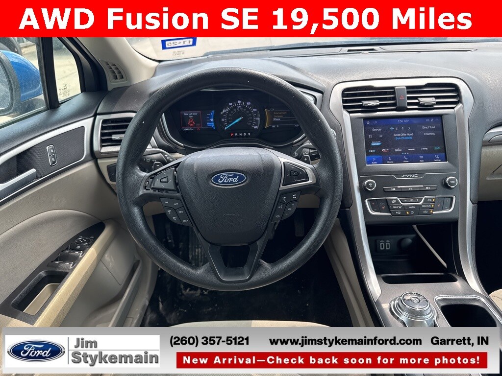 * Apple CarPlay/Android Auto *, * USB ADAPTER *, * BLUETOOTH *, * HEATED SEATS *, * AWD *, *Call 260-357-5121*, *** COMPLEMENTARY 3 MONTH - 3,000 MILE POWERTRAIN WARRANTY ***, Fusion SE, 4D Sedan, AWD, Velocity Blue Metallic, 18" Machined-Face Aluminum Wheels, ABS brakes, Air Conditioning, Alloy wheels, AM/FM radio: SiriusXM, Auto High-beam Headlights, Auto-dimming Rear-View mirror, Automatic temperature control, Brake assist, Bumpers: body-color, Cloth Front Bucket Seats, Delay-off headlights, Driver door bin, Dual front side impact airbags, Electronic Stability Control, Emergency communication system: SYNC 3 911 Assist, Equipment Group 150A, Exterior Parking Camera Rear, Four wheel independent suspension, Front Bucket Seats, Front Center Armrest, Front dual zone A/C, Front License Plate Bracket, Fully automatic headlights, Fusion SE All-Wheel-Drive Package, Heated door mirrors, Heated Front Seats, Heated front seats, Knee airbag, Low tire pressure warning, Memory seat, Occupant sensing airbag, Outside temperature display, Overhead console, Panic alarm, Power driver seat, Power steering, Power windows, Premium Floor Liners Front & Rear, Radio data system, Rain sensing wipers, Security system, SiriusXM Radio, Speed-sensing steering, Speed-Sensitive Wipers, Split folding rear seat, Steering wheel mounted audio controls, SYNC 3 Communications & Entertainment System, Tachometer, Tilt steering wheel, Traction control, Upgraded Sideview Mirrors w/Heat.