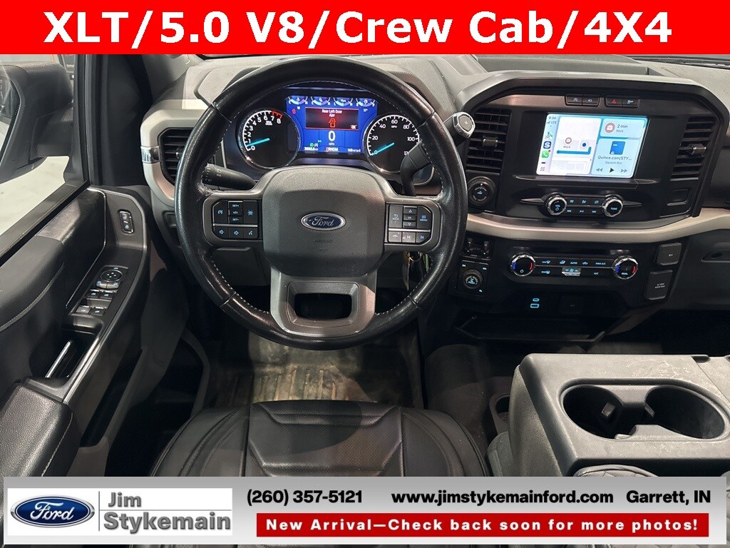 * Apple CarPlay/Android Auto *, * USB ADAPTER *, * BLUETOOTH *, * KEYLESS START *, * 4WD *, *Call 260-357-5121*, *** COMPLEMENTARY 3 MONTH - 3,000 MILE POWERTRAIN WARRANTY ***, 4D SuperCrew, 5.0L V8, 4WD, 6 Speakers, 8-Way Power Driver's Seat w/Power Lumbar, 8" Productivity Screen in Instrument Cluster, ABS brakes, Air Conditioning, Alloy wheels, AM/FM radio, Auto High-beam Headlights, Auto-Dimming Rear-View Mirror, Brake assist, Bumpers: chrome, Class IV Trailer Hitch Receiver, Compass, Dual front side impact airbags, Dual Zone Automatic Temperature Control, Electronic Stability Control, Emergency communication system: SYNC 4 911 Assist, Equipment Group 301A Mid, Front fog lights, Front wheel independent suspension, Heated door mirrors, Illuminated entry, Integrated Trailer Brake Controller, Leather-Wrapped Steering Wheel, Low tire pressure warning, Overhead console, Power Glass Heated Sideview Mirrors, Power steering, Power windows, Pro Trailer Backup Assist, Radio data system, Radio: AM/FM SiriusXM w/360L, Radio: AM/FM Stereo w/6 Speakers, Rear Under-Seat Storage, Rear window defroster, Remote keyless entry, SecuriCode Drivers Side Keyless-Entry Keypad, Speed control, Speed-sensing steering, Steering wheel mounted audio controls, SYNC 4, SYNC 4 w/Enhanced Voice Recognition, Telescoping steering wheel, Traction control, Trailer Tow Package.