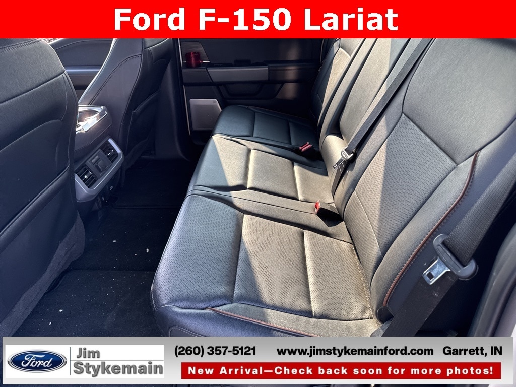 * Apple CarPlay/Android Auto *, * USB ADAPTER *, * BLUETOOTH *, * NAVIGATION GPS NAV *, * LEATHER *, * HEATED SEATS *, * HEATED AND COOLED SEATS *, * KEYLESS START *, * REMOTE ENGINE START *, * 4WD *, *Call 260-357-5121*, F-150 Lariat, 4D SuperCrew, 5.0L V8, 4WD, Black w/Leather-Trimmed Bucket Seats, 2nd Row Heated Seats, 4-Wheel Disc Brakes, 6" Extended Chrome Running Boards, 8 Speakers, ABS brakes, Adjustable pedals, Air Conditioning, AM/FM radio: SiriusXM with 360L, Auto High-beam Headlights, Brake assist, Chrome wheels, Compass, Console Worksurface, Driver door bin, Driver vanity mirror, Dual front side impact airbags, Electronic Stability Control, Equipment Group 502A High, Front Bucket Seats, Front Center Armrest, Front dual zone A/C, Front fog lights, Front reading lights, Front wheel independent suspension, Fully automatic headlights, Heads-Up Display, Heated front seats, Low tire pressure warning, Memory seat, Mobile Office Package, Navigation system: Connected Navigation, Occupant sensing airbag, Outside temperature display, Overhead console, Panic alarm, Partitioned Lockable Rear Storage, Pedal memory, Power door mirrors, Power driver seat, Power passenger seat, Power steering, Power windows, Radio: B&O Sound System by Bang & Olufsen, Radio: B&O Unleashed Sound System by Bang & Olufsen, Rain sensing wipers, Rear reading lights, Rear seat center armrest, Rear step bumper, Rear window defroster, Remote keyless entry, Security system, Speed control, SYNC 4 w/Enhanced Voice Recognition, Tachometer, Telescoping steering wheel, Tilt steering wheel, Traction control, Variably intermittent wipers, Ventilated front seats, Wheels: 20" Chrome-Like PVD, Wireless Charging.