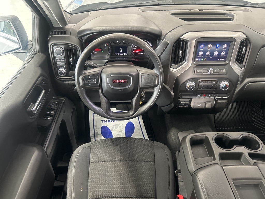 * Apple CarPlay/Android Auto *, * USB ADAPTER *, * BLUETOOTH *, * ONE OWNER *, * CLEAN VEHICLE HISTORY...NO ACCIDENTS *, * 4WD *, *Call 260-357-5121*, *** COMPLEMENTARY 3 MONTH - 3,000 MILE POWERTRAIN WARRANTY ***, 4D Crew Cab, EcoTec3 5.3L V8, 4WD, Quicksilver Metallic, Jet Black w/Cloth Seat Trim, 170 Amp Alternator, 4-Way Manual Driver Seat Adjuster, 4-Way Manual Passenger Seat Adjuster, 6-Speaker Audio System Feature, Air Conditioning, Apple CarPlay/Android Auto, Black Manual Outside Mirrors, Brake assist, Chrome Surround Grille w/Black Mesh, Delay-off headlights, Driver door bin, Electronic Stability Control, Exterior Parking Camera Rear, Front 40/20/40 Split-Bench Seat (A52), Front anti-roll bar, Front Center Armrest, Front Frame-Mounted Black Recovery Hooks, Fully automatic headlights, Heavy Duty Suspension, Hitch Guidance, Low tire pressure warning, Occupant sensing airbag, Outside temperature display, Overhead console, Power Rear Windows w/Express Down, Power steering, Power windows, Preferred Equipment Group 1SA, Premium audio system: GMC Infotainment System, Radio: GMC Infotainment Audio System, Sierra Value Package, Solar Absorbing Tinted Glass, Speed-sensing steering, Split folding rear seat, Tachometer, Tilt steering wheel, Traction control, Trailering Package, Trip computer, Variably intermittent wipers.