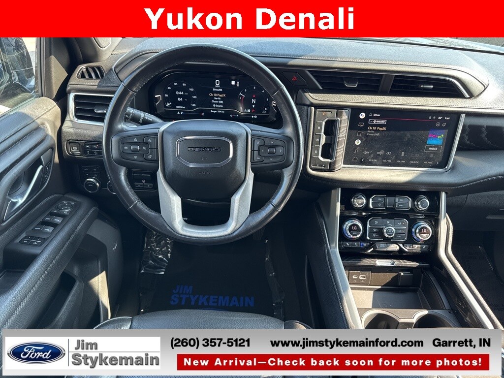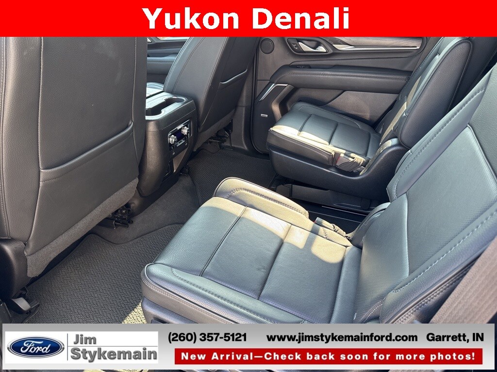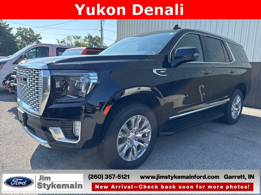 * Apple CarPlay/Android Auto *, * USB ADAPTER *, * BLUETOOTH *, * NAVIGATION GPS NAV *, * LEATHER *, * HEATED AND COOLED SEATS *, * KEYLESS START *, * 3RD ROW SEATS *, * REMOTE ENGINE START *, * POWER REAR LIFTGATE *, * 4WD *, *Call 260-357-5121*, Yukon Denali, 4WD, Onyx Black, Jet Black w/Perforated Leather-Appointed Seating, 14 Speakers, 15" Diagonal Multi-Color Head-Up Display, 2 Presets For Outside Rearview Mirrors, 3 Years of GMC Connected Services, 3rd Row 60/40 Power-Folding Split-Bench Seat, Adaptive suspension, Air Conditioning, AM/FM radio: SiriusXM with 360L, AM/FM Stereo, Apple CarPlay/Android Auto, Automatic Stop/Start, Automatic temperature control, Bose 14-Speaker Surround w/CenterPoint, Brake assist, Bright Front & Rear Door Sill Plates, Chrome Door Handles w/Body-Color Strip, Delay-off headlights, Dual Exhaust System, Dual front impact airbags, Emergency communication system: OnStar and GMC Connected Services capable, Floor Console, Forward Collision Alert, Front Bucket Seats, Front dual zone A/C, Front fog lights, Front Pedestrian Braking, Front reading lights, Fully automatic headlights, Galvano Bodyside Moldings, Hands-Free Power Programmable Rear Liftgate, HD Surround Vision, Heads-Up Display, Heated & Ventilated Driver & Front Passenger Seats, Heated 2nd Row Outboard Position Seats, Heated Driver & Front Passenger Seats, Heated front seats, Heated Steering Wheel, Hill Descent Control, Inside Rear-View Auto-Dimming Mirror, Lane Change Alert w/Side Blind Zone Alert, Lane Keep Assist w/Lane Departure Warning, Magnetic Ride Control Suspension, Memory seat, Navigation System, Occupant sensing airbag, Outside Heated Power-Adjustable Mirrors, Overhead airbag, Power Liftgate, Power Release 2nd Row Bucket Seats, Power steering, Power Tilt & Telescopic Steering Column, Preferred Equipment Group 5SA, Rain sensing wipers, Rear air conditioning, Rear Pedestrian Alert, Rear window defroster, Rear window wiper, Remote keyless entry, Roof rack: rails only, Safety Alert Seat, SiriusXM w/360L, Speed-sensing steering, Spoiler, Start/Stop System Disable Button, Steering wheel mounted audio controls, Tachometer, Telescoping steering wheel, Traction control, Universal Home Remote, Variably intermittent wipers, Wireless Charging.