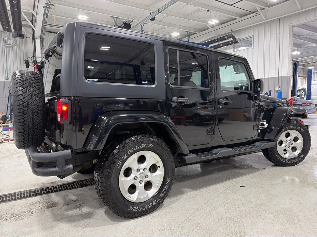 * 4WD *, *Call 260-357-5121*, Wrangler Unlimited Sahara, 4D Sport Utility, 3.6L V6 24V VVT, 4WD, Black Clearcoat, 18" x 7.5" Polished Satin Carbon Wheels, 4-Wheel Disc Brakes, 7 Speakers, ABS brakes, Air Conditioning, Alloy wheels, Audio Jack Input for Mobile Devices, Auto-dimming Rear-View mirror, Black 3-Piece Hard Top, Brake assist, CD player, Cloth Bucket Seats, Compass, Connectivity Group, Driver door bin, Dual front impact airbags, Dual Top Group, Electronic Stability Control, Freedom Panel Storage Bag, Front anti-roll bar, Front fog lights, Fully automatic headlights, Heavy Duty Suspension w/Gas Shocks, Illuminated entry, Leather steering wheel, Low tire pressure warning, Outside temperature display, Panic alarm, Passenger vanity mirror, Power steering, Power windows, Premium Black Sunrider Soft Top, Quick Order Package 24G, Radio data system, Radio: Uconnect 130 AM/FM/CD/MP3, Rear anti-roll bar, Rear Window Defroster, Rear Window Wiper/Washer, Remote keyless entry, Security system, Speed control, Split folding rear seat, Steering wheel mounted audio controls, Sunrider Soft Top, Tachometer, Tilt steering wheel, Tire Pressure Monitoring Display, Traction control, Trip computer, Vehicle Information Center.